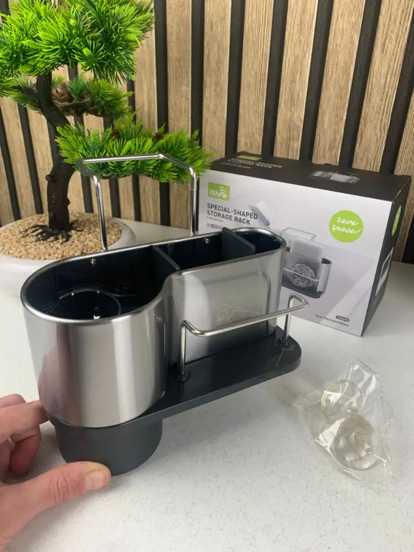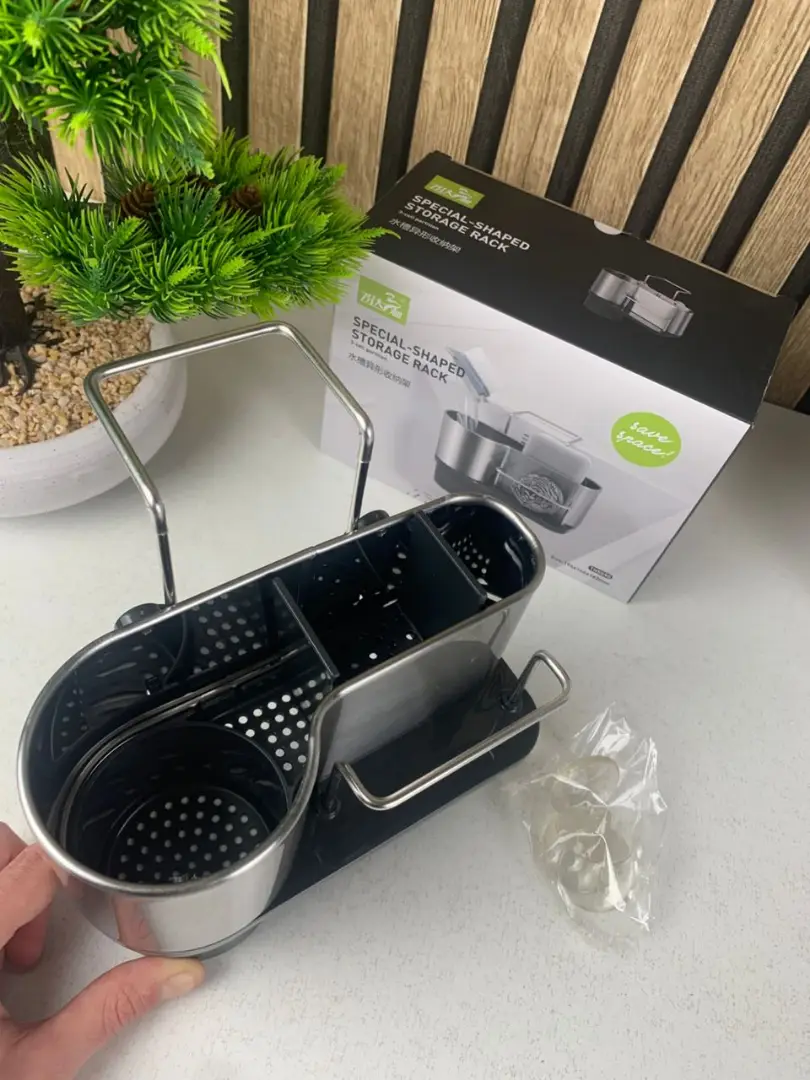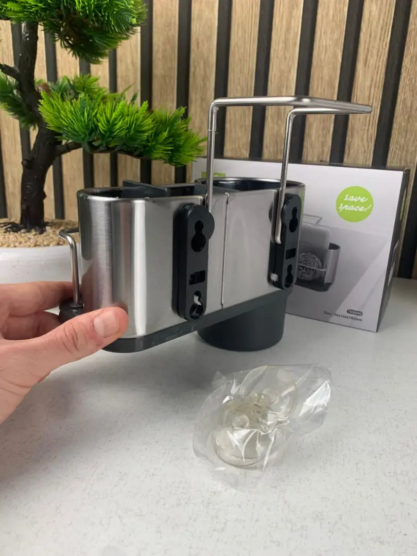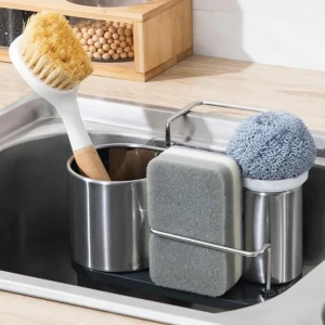 ارتقِ بتنظيم مطبخك مع حامل الإسفنج المصنوع من ستانلس ستيل عالي الجودة، يجمع بين المتانة، النظافة، والتصميم العصري.