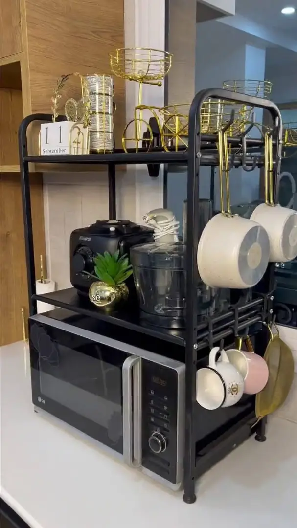 يُعد هذا الرف خيارًا مثاليًا لتنظيم مطبخك، حيث يمكن استخدامه كـ حامل ميكروويف، رف أفران، رف توابل، رف تحضير، أو وحدة تخزين متعددة الاستعمالات. مناسب للمطبخ، غرفة المعيشة، غرفة النوم أو حتى الحمام.