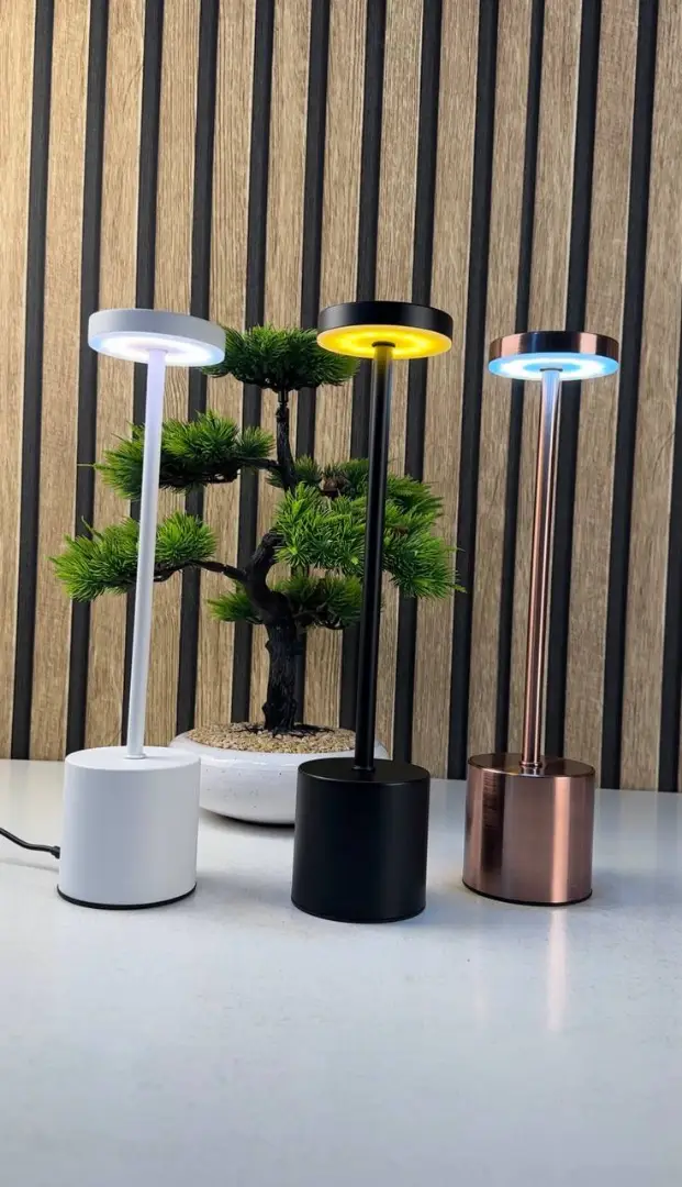 بيع منتجات - Lampe de table LED tactile rechargeable 3 couleurs design classiq