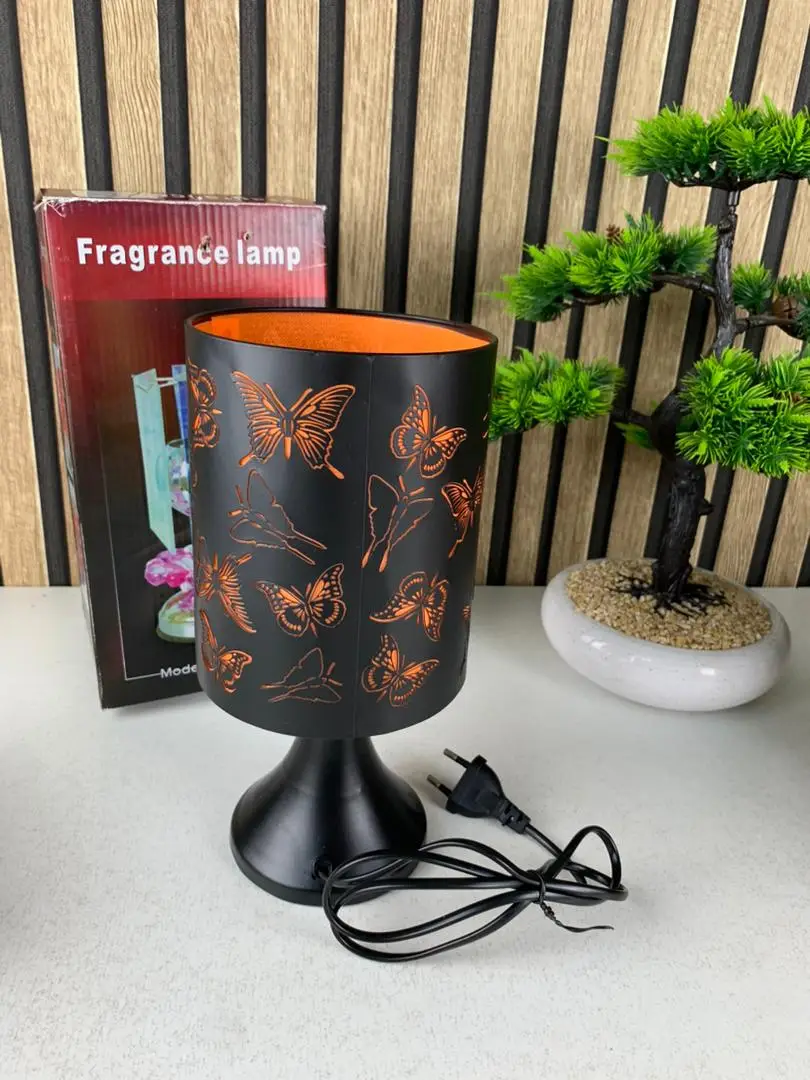 🌙✨ أضف لمسة شاعرية إلى منزلك بهذه المصباح الزخرفي الأنيق، المزود بغطاء أسود مزخرف بشكل فراشات 🦋.