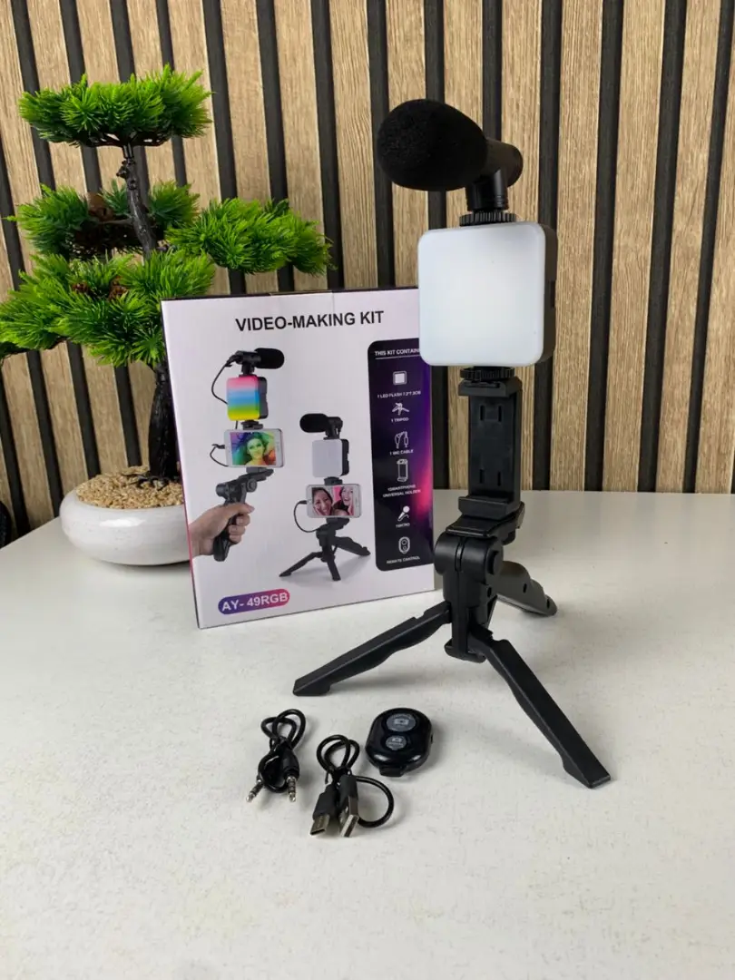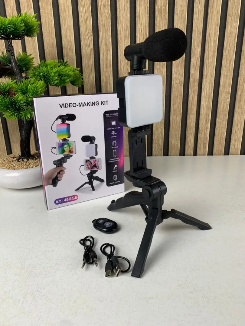 كيت فلوقينغ متكامل يحتوي على حامل ثلاثي قوي (Tripod)، إضاءة LED RGB، حامل هاتف وميكروفون لاسلكي، مصمم خصيصًا لصنّاع المحتوى، اليوتيوبرز، والتيك توكرز.