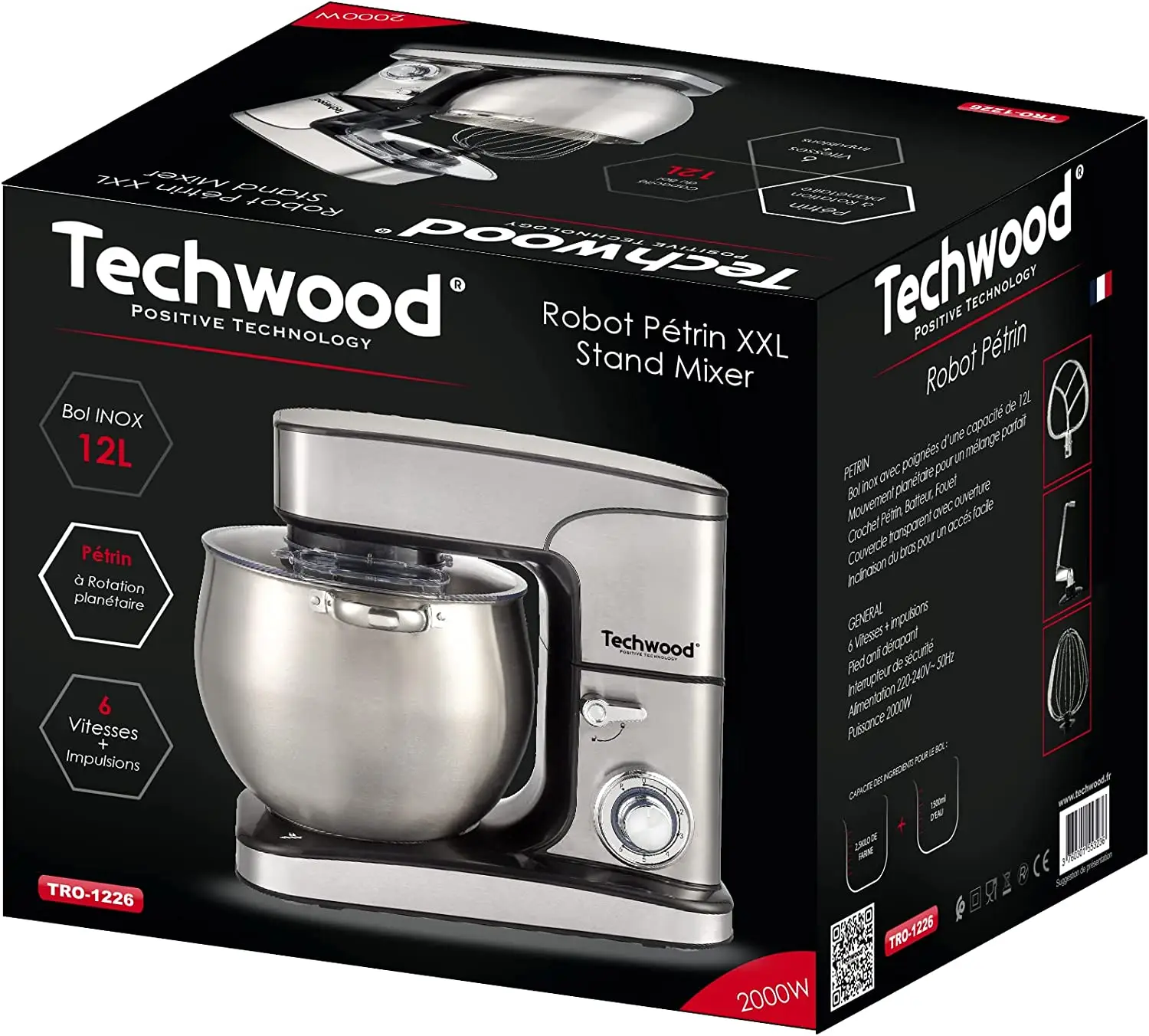 – 6 سرعات، مع خطافات عجن وخفق، غطاء شفاف بفتحة إضافة.