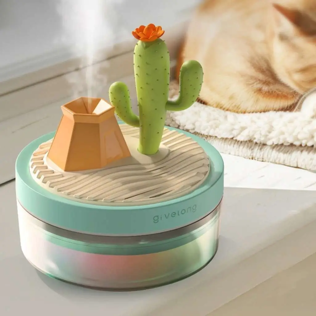 تصميمه المميز بشكل منظر طبيعي مع بركان وأشجار جوز الهند يضيف لمسة جمالية فريدة، مع أداء قوي يمنحك الرطوبة التي تحتاجها في المساحات الصغيرة.